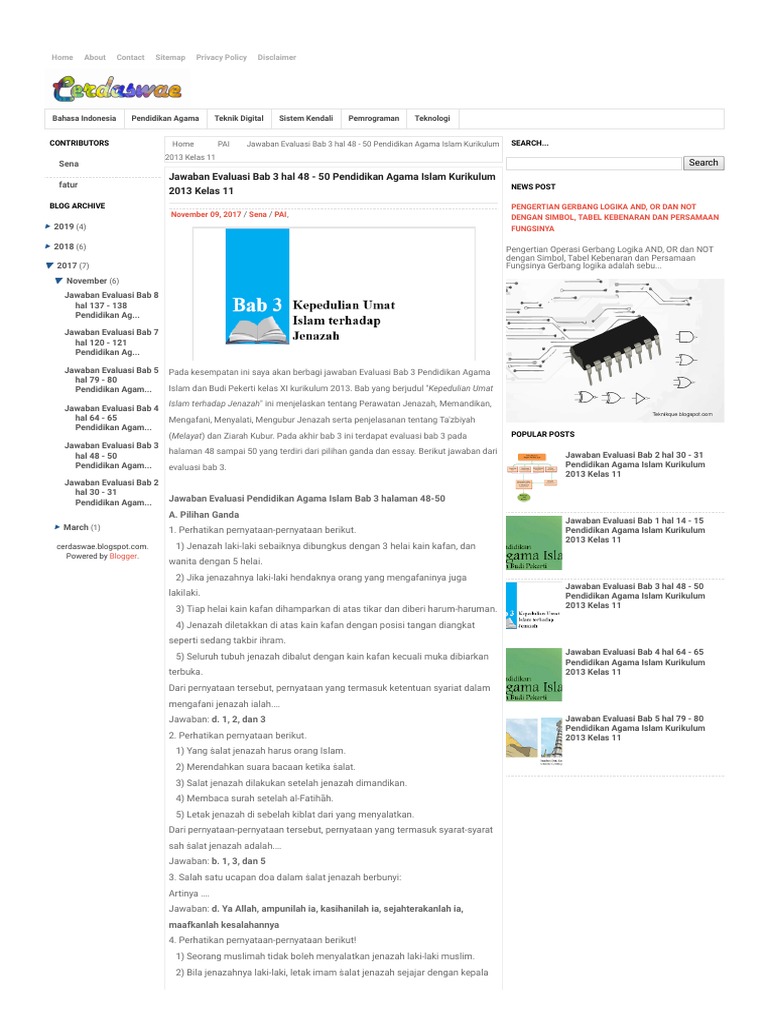 Kunci jawaban agama islam kelas 11 semester 2 bab 9 ilmusosial id from www.ilmusosial.id cukup pilih tingkat anda dan kami akan menunjukkan. Bab yang berjudul kepedulian umat islam terhadap jenazah ini menjelaskan tentang perawatan jenazah, memandikan, mengafani, menyalati, mengubur jenazah serta penjelasanan tentang ta'zbiyah (melayat) dan ziarah kubur. Aug 17, 2021 · jawaban evaluasi bab 7 agama islam kelas 11. Kunci jawaban pai kelas 7 pendidikan agama islam buku siswa kurikulum 2013 revisi 2017 ilmu edukasi newer read more Oct 08, 2020 · sekian jawaban evaluasi bab 3 halaman 48 sampai 50 pendidikan agama islam kelas xi kurikulum 2013 yang dapat saya bagikan. Kunci jawaban mandiri bahasa indonesia bab 1 kelas 11 steven. Soal ukk agama islam kelas 8 dan kunci jawaban soal uas fisika kelas 11 semester 2 kurikulum 2013 revisi. Kunci jawaban agama islam hal 198 kelas 11. Jawaban esai evaluasi bab 11 pai halaman 195 kelas 11 Contoh soal pendidikan agama islam pai kelas 11 dan kunci jawaban 2020 1. Ajukan pertanyaan tentang tugas sekolahmu. November 09, 2017 / sena / pai, pada kesempatan ini saya akan berbagi jawaban evaluasi bab 3 pendidikan agama islam dan budi pekerti kelas xi kurikulum 2013. Kunci jawaban biologi mandiri byadmin.